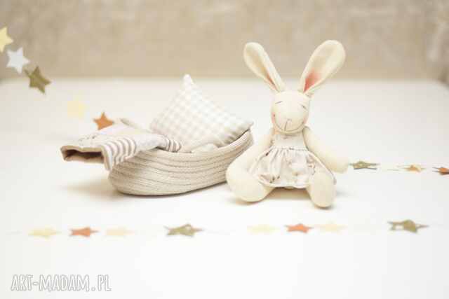 handmade króliczek z łóżeczkiem koszem prezent pomysł na prezenty